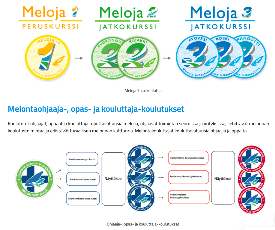 Melonta- ja soutuliiton kuvassa on esiteltynä koko koulutuspolku: